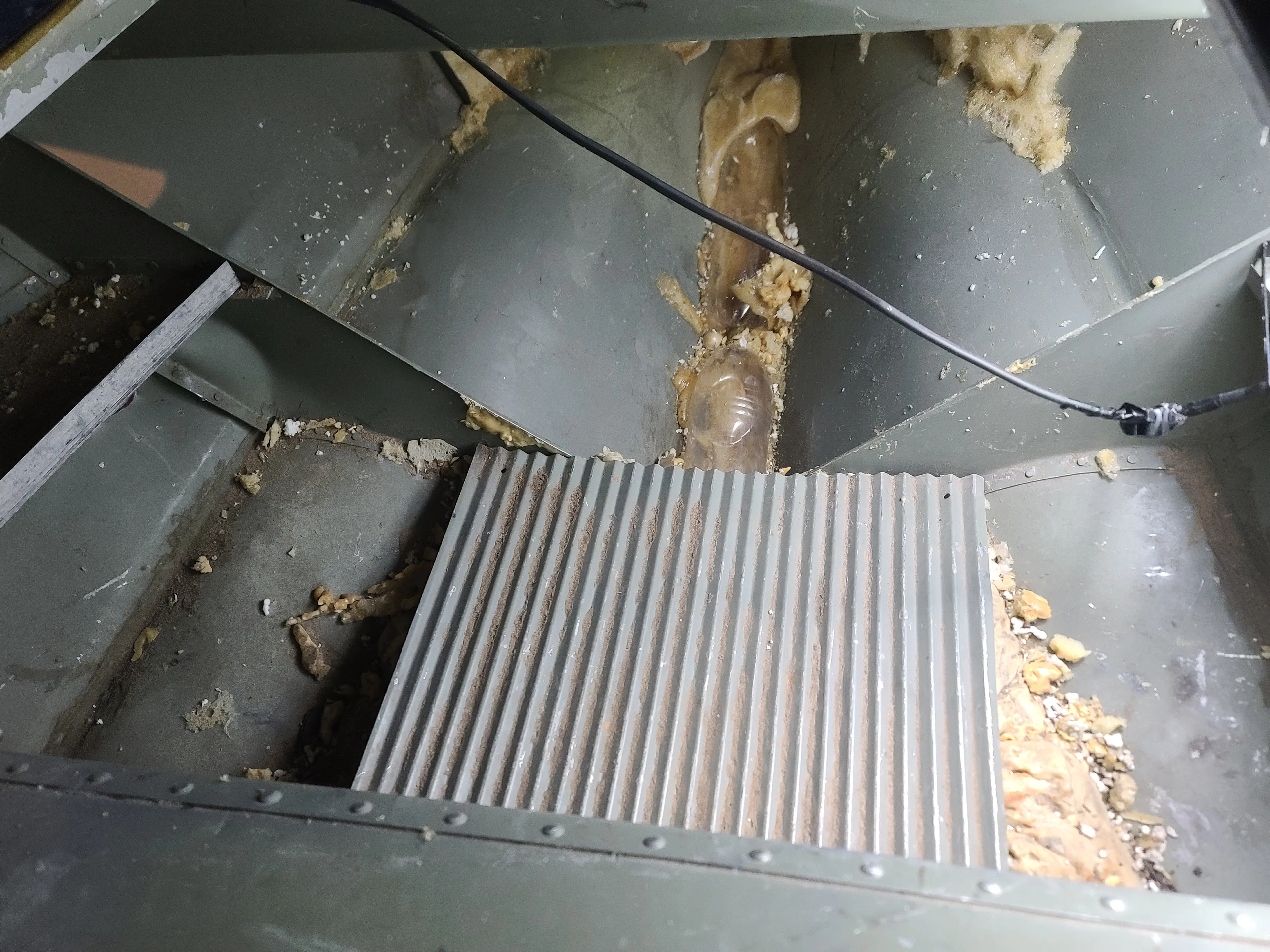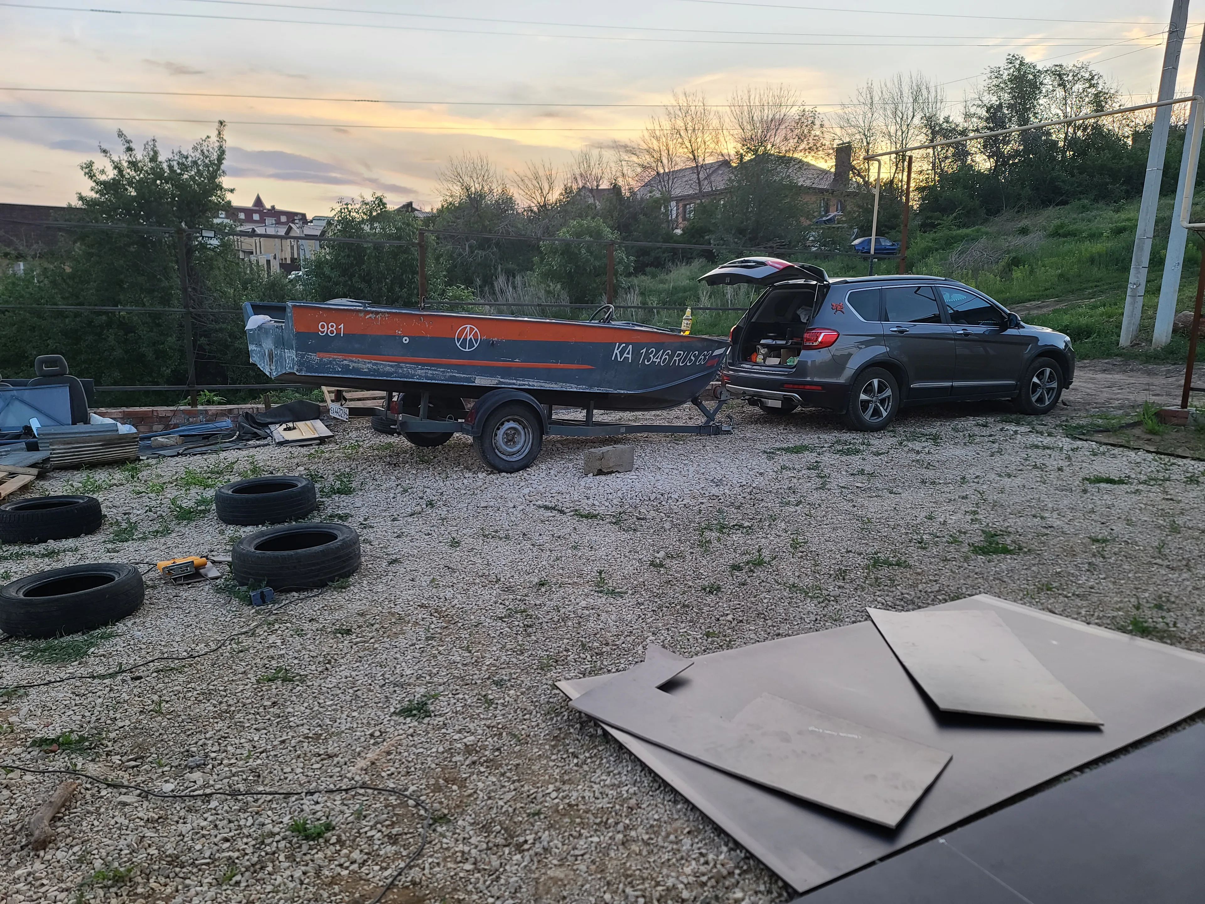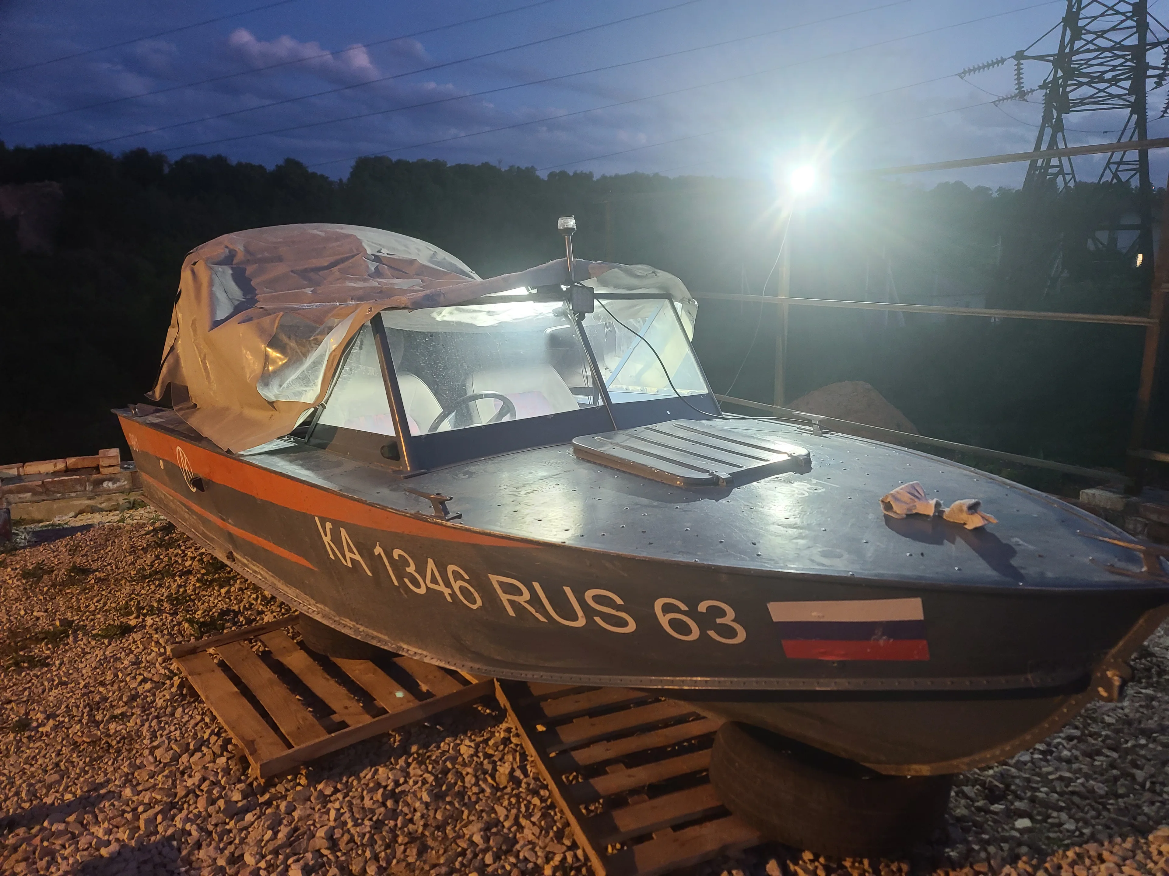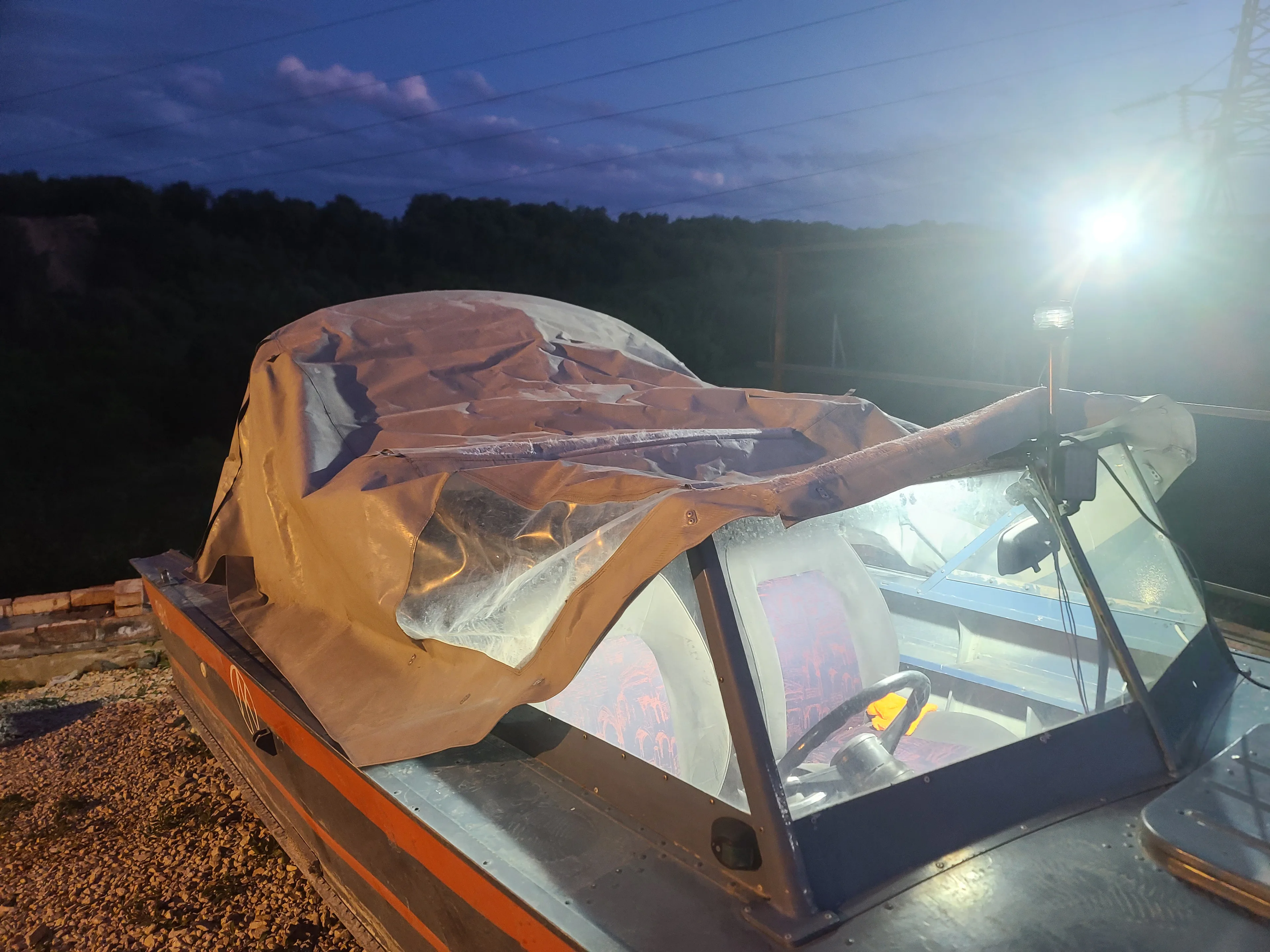 Лодка отпескоструена, загоняем обратно. К сожалению, фоток не делал, потому что надо было как можно скорее укрывать голый алюминий кислотным грунтом, поэтому фото с камеры: